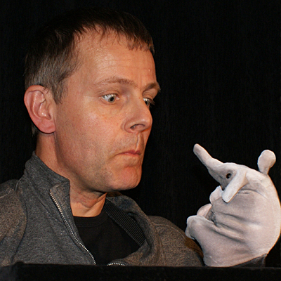 Elefantöse Puppenszenen mit viel Magie auf einer Bauchladenbühne